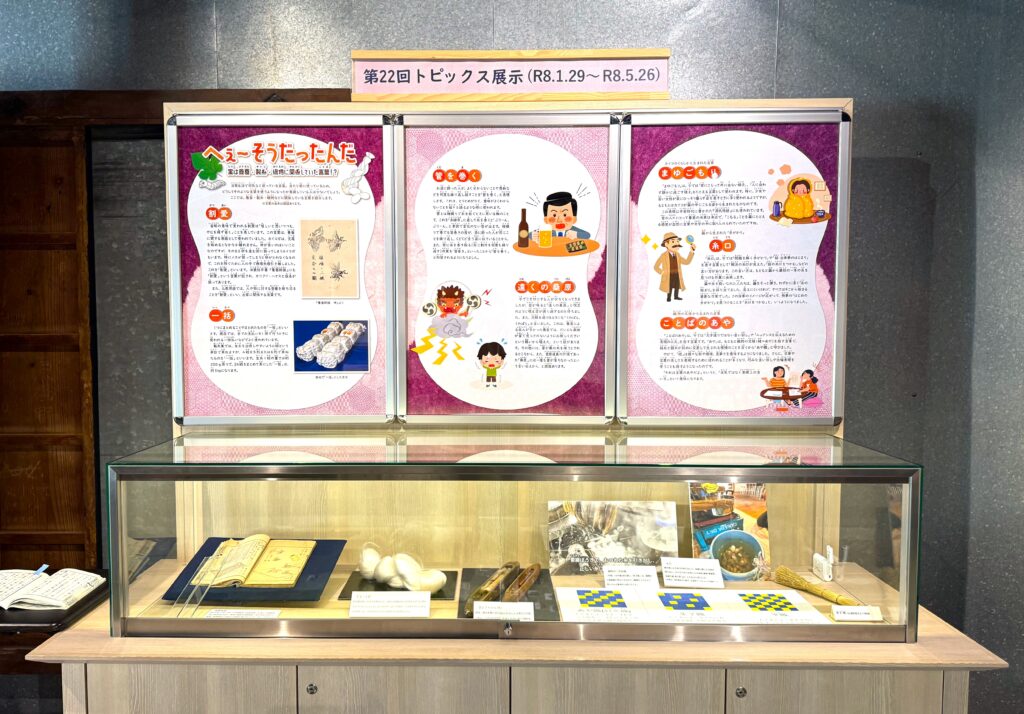 日常生活で何気なく使っている言葉の中には、養蚕・製糸・織物に関係しているものがあります。本展示では、その言葉がどのように生まれ、使われてきたのかをひもときながら、思わず「へぇ~そうだったんだ」と感じる、言葉の由来と絹文化のつながりを紹介します。